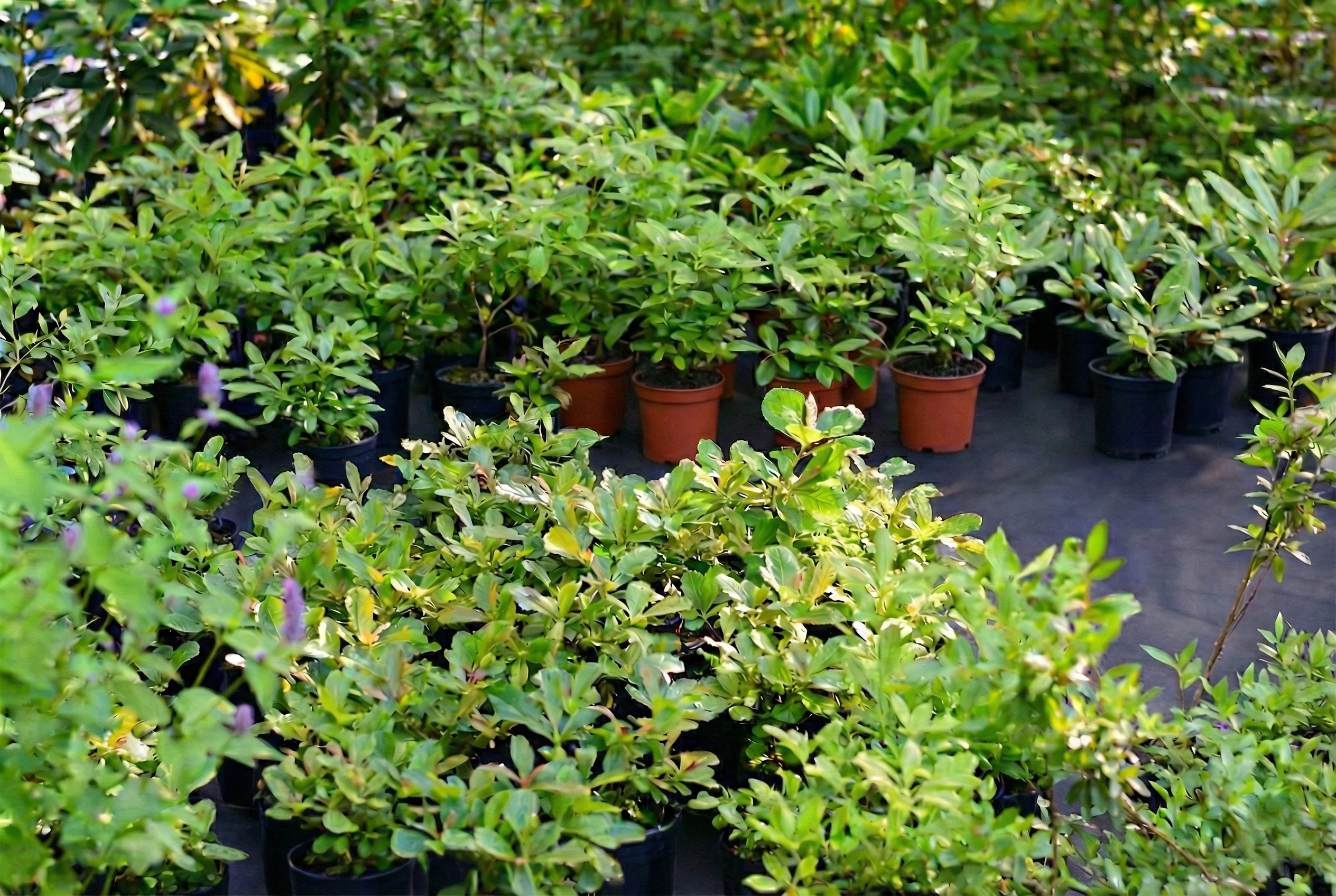 Акклиматизированные саженцы: декоративные деревья и кустарники, травянистые растения.